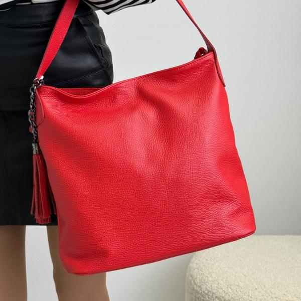Купить женскую сумочку красного цвета из натуральной кожи на каждый день. Сумочка на каждый день очень вместительная и практичная, удобная ручка на плечо. Внутри два основных отделения, карман перегородка на молнии, также есть дополнительные карманы на молнии и без молнии. Мягкая и очень приятная на ощупь кожа флотар.