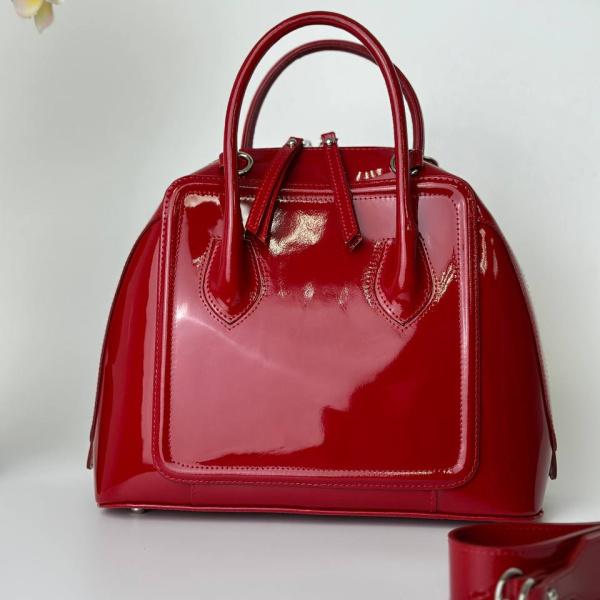 Женская кожаная сумка красивого яркого красного цвета, продуманна до деталей. Кожа лаковая, что придает данной модели особую уникальность. Внутри два отделения, карман перегородка на молнии, также есть дополнительные карманы на молнии и без. Сумочку можно носить за короткие ручки, а также в дополнение идет широкий ремень, который легко можно зафиксировать сверху сумочки и свободно носить на плече.