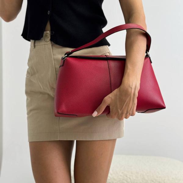Если сомневаешься - одевай нашу красную сумочку. Наша новая и очень необычная модель, что сумеет добавить вам уверенности и стильности. Сумочка необычная тем, что она имеет одно основное отделение, но внутри есть клатч, который свободно вынимается и его можно использовать отдельно от сумочки. Его можно носить через плечо и на плече с помощью ремня. Этот же ремень можно использовать и к самой сумочке - как дополнительный. И носить сумку как на коротком так и на длинном ремне. Полностью модель закрывается клапаном на магнитной кнопке. Будь уверенной каждый день.