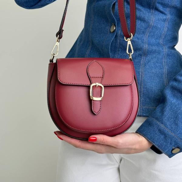 Элегантная женская сумочка округлой формы из натуральной гладкой кожи в насыщенном красном цвете. Компактная, но вместительная модель сочетает стиль и практичность. Внутри - одно просторное отделение с карманом на молнии, а спереди удобный открытый карман без молнии. Закрывается сумочка полностью стильным клапаном на магнитной кнопке. Фурнитура приятного золотистого цвета. Регулируемый ремень позволяет носить сумку на плече или через плечо, обеспечивая комфорт в любых ситуациях. Универсальный аксессуар, который подчеркнет ваш образ и станет незаменимым в повседневной жизни.