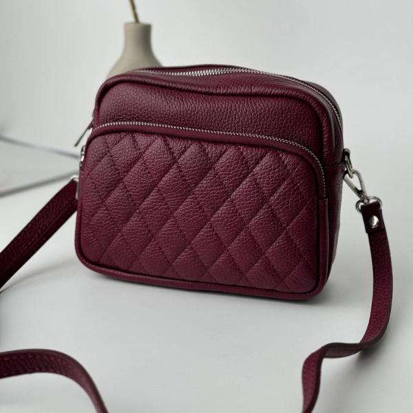 Наша красивая модель в невероятном бордовом цвете дополнить абсолютно любой ваш образ. Полностью модель выполнена из натуральной приятной на ощупь кожи. Имеет модель два отдельных отделения на замке. Дополнительные карманы на молнии и без. Она практична и подойдет под любой образ. А для удобного ношения есть ремень, который регулируется под нужно вам длину.