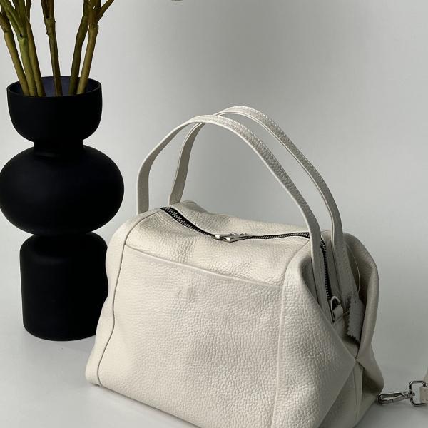 Сумка из мягкой натуральной кожи, очень шикарная модель, плечевой ремень в комплекте. Одно отделения которое закрываются на молнию, также есть дополнительный карман на молнии и без, боковые карманы на кнопке-магнит. Сумочку можно носить через плечо, очень удобная и стильная модель.