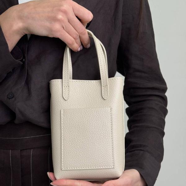 Мини-сумка из натуральной зернистой кожи в утончённом молочном оттенке - идеальный аксессуар для прогулок и ежедневного использования. Компактный размер, удобный передний карман и основное отделение обеспечивают комфортное размещение нужных вещей. Носить её можно в руке или через плечо - благодаря регулируемому ремню. В нашем магазине вы можете купить женскую сумку из натуральной кожи по выгодной цене - стиль и удобство в каждом дне.