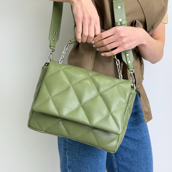 Купить женскую кожаную оливковою сумку отличное решения на каждый день. Сумка имеет удобные ручки, поэтому Вы можете носить ее в руке, а если нужны свободные руки - ее можно носить также и на плече. Внутри сумки одно основное отделения которое закрывается на молнию, также дополнительный карман на молнии.