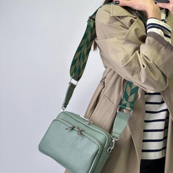 Модная новинка из натуральной мягкой кожи, на широком ремне, будет радовать вас каждый день. Внутри одно основное отделения закрывается на молнию, также есть дополнительный карман на молнии. Подойдет как на прогулку и на каждый день.