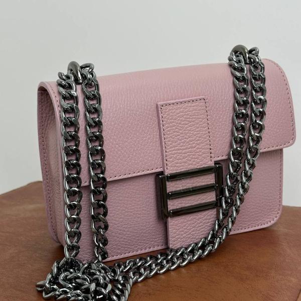 Маленькая и аккуратная женская сумочка пудрового цвета из натуральной очень приятной на ощупь кожи. Сумочка имеет одно основное отделение. Внутри отделения есть карманы на молнии и без. Закрывается сумочка на крепкой магнитной кнопке. Дополняет эту сумочку цепочка-ремень серебристого цвета, который имеет хорошую длину, что разрешает носить сумочку как на плече так и через плечо. Красивая и очень удобная сумочка, подойдет под любой стильный образ.