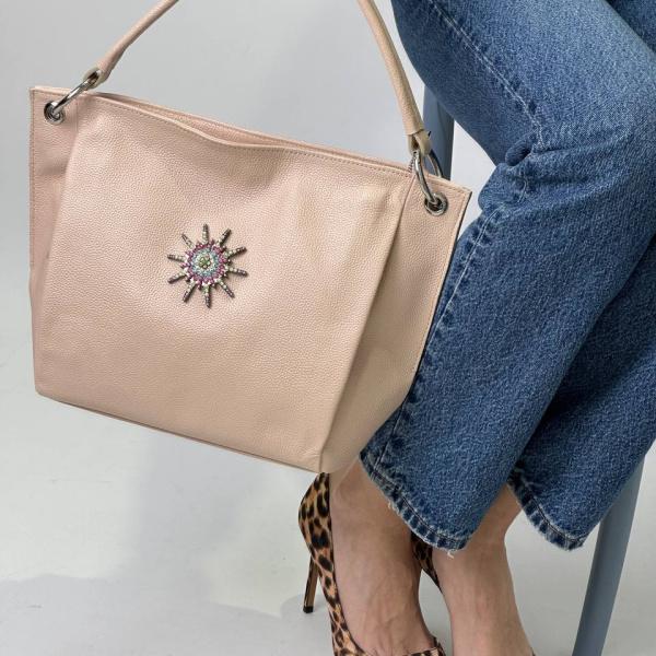 Пудровая сумка выполнена из качественной натуральной зернистой кожи. Эта шикарная моделька подойдет под любой ваш наряд. Внутри сумки два основных отделения, также есть карман на молнии который разделяет сумку, и дополнительные карманы на молнии и без молнии. В комплекте плечевой ремень который регулируется.