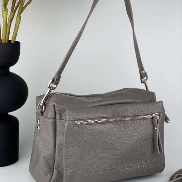 Вместительная модель сумочки из натуральной кожи флотар. Невероятно красивая и очень удобная, сумка имеет одно основание отделения, также два полноценных боковых кармана, и дополнительные карманы на молнии и без, сумку можно носить как на плече так и через плечо, в комплекте два плечевых пояса что очень удобно.