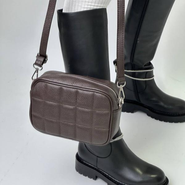 Кроссбоди из мягкой натуральной кожи, плечевой ремень регулируется. Под клапаном одно отделения которые закрываются на молнию, также есть дополнительный карман. Сумочку можно носить через плечо, очень удобная и стильная.