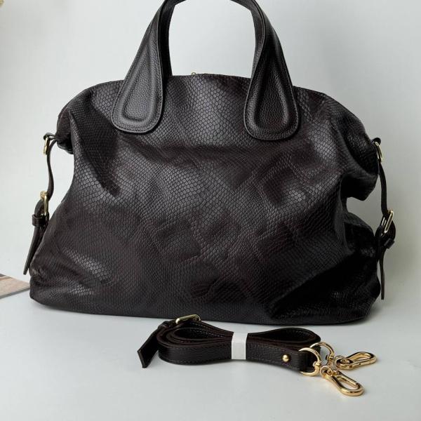 Купить женскую сумочку большого размера с которой вы сможете помесить все самое необходимое на каждый день или даже в длинную поездку. Модель выполнена полностью из натуральной и очень приятной на ощупь кожи. Сумочка имеет два полноценных отделения, также карман на молнии и два без молнии. В комплекте плечевой ремень, которые регулируется.