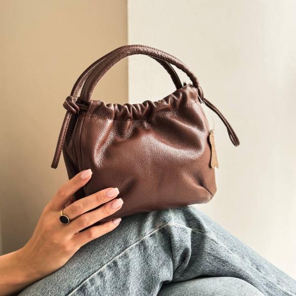 Стильная и очень вместительная сумочка шоколадного цвета. Имеет одно основное отделения которое закрывается на магнитную кнопку. Внутри два кармана на молнии и без. Есть ремень, который очень легко снимается и разрешает носить сумочку на плече. Сбоку есть завязки, с помощью которых можно сузить или расширить сумочку. Сумочку можно сочетать с любим абсолютно образами.