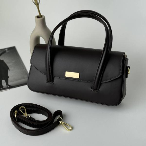 Шоколадная сумочка из гладкой кожи на каждый день. Под клапаном одно основное отделение, которое закрывается дополнительно на замок. Внутри есть карман на молнии. Есть две закругленные ручки, а также дополнительно есть ремень, который регулируется. Отличный выбор для тех, кто ценит функциональность и стиль в компактных аксессуарах. Она классическая, но очень эффектная.