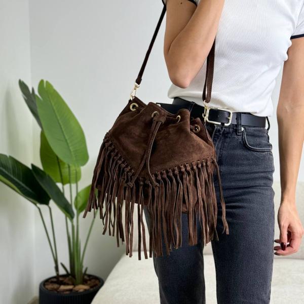 Наша горячая новинка! Сумочка из натуральной итальянской замши в приятном шоколадном цвете. Модель имеет одно основное отделение внутри которого есть карман на молнии. Фурнитура крепкая золотистого цвета. Ее свободно можно носить как в руках так и на плече. Она неотменно предаст вам шарма.
