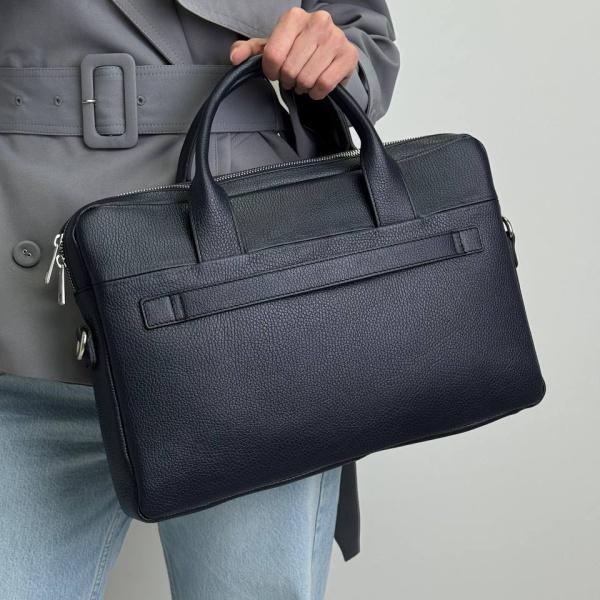 Женская сумка из натуральной зернистой кожи насыщенного синего цвета - это удачное сочетание сдержанного дизайна и продуманной функциональности. Вместительное основное отделение на молнии удобно размещает ноутбук или документы формата А4, что делает модель практичным решением на каждый день. Благодаря широкому регулируемому ремню и коротким ручкам сумку удобно носить в любом формате. Дополнительный кожаный держатель спереди завершает образ и акцентирует внимание на деталях. В нашем магазине вы можете купить женскую сумку из натуральной кожи по выгодной цене - надёжный выбор для активного образа жизни.