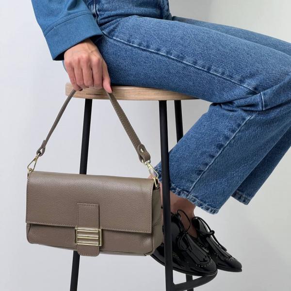 Самая популярная модель этого сезона, сумочка из натуральной кожи флотар. Эта модель очень популярна и практичная. Сумочка под клапаном закрывается на молнию, имеет одно основное отделения и дополнительный карман на молнии. Также в комплекти два плечевых ремни.