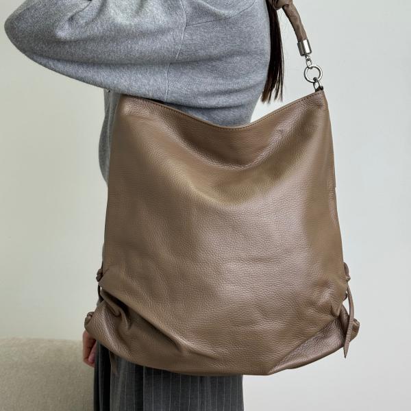 Женская сумочка из натуральной итальянской кожи приятного цвета тауп. Внутри одно отделения, также есть дополнительные карманы на молнии и без, очень вместительная, также очень удобная ручка на плече. Имеет все необходимое под рукой можно именно с этой красивой моделью.