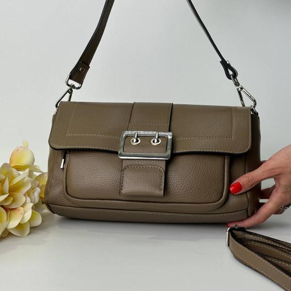 Эта стильная сумочка не оставит Вас без взгляда окружающих. Под клапаном сумки два основных отделения которые закрываются на молнию, также внутри есть дополнительный карман для мелких вещей. В комплекте два ремни, длинная ручка через плечо она регулируется под нужную Вам длину и коротка ручка, можно носить в руках или на плече. Сумочка выполнена из качественной натуральной зернистой кожи, она идеальная.