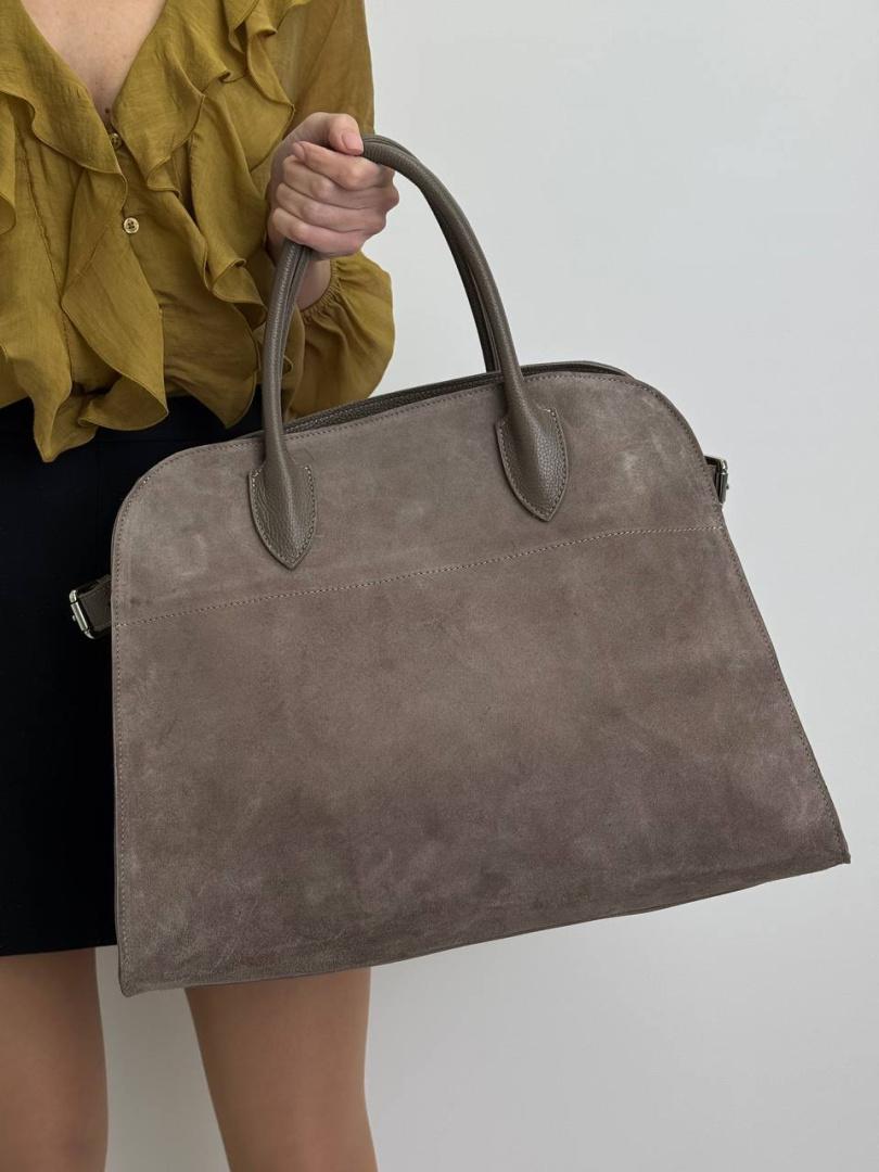 Наша новинка! Сумочка из натуральной итальянской кожи приятного цвета тауп. Данная модель имеет безупречное соединение двух типов кожи- нубук и кожи флотар. Внутри сумки одно основное отделение, а также небольшой карман бе молнии и карман на молнии. Подкладка светлого цвета с упругой ткани. Закрывается сумочка полностью на крючке. По бокам есть небольшие ремни, с помощью которых можно расширить или сузить верх сумочки. Модель очень приятная на ощупь. Она подойдет как для путешествий так и офисного варианта.