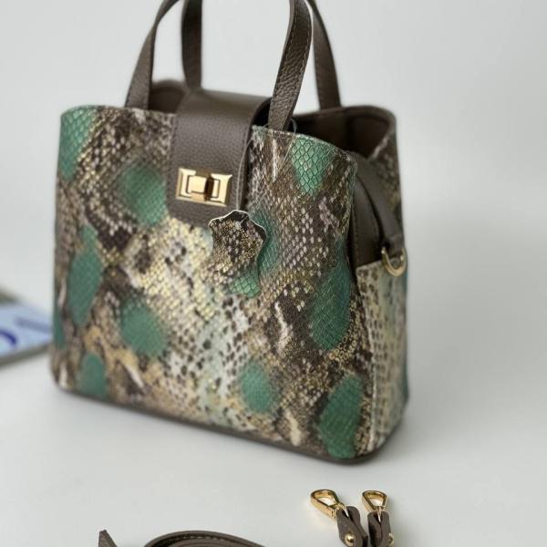 Купить женскую сумочку з натуральной кожи небольшого размера, которая добавить особый штрих в Ваш гардероб. Сумочка имеет три основные очень вместительные отделение. Центральное закрывается на молнию, а два других полностью клапаном на замке. Сумочка имеет крепкую и золотистую фурнитуру. Удобные ручки и дополнительно ремень, который легко регулируется. А ее цвета красиво переливаются на солнце и придают ей блеска и яркости.