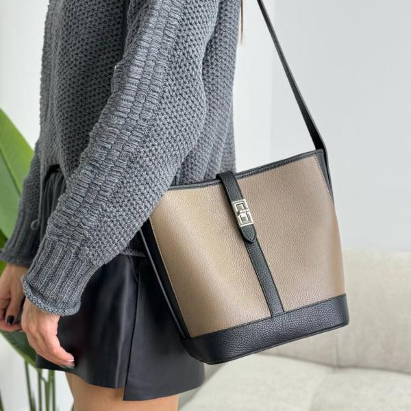Необычная модель в красивом соединении двух цветом. Сумка имеет одно просторное основное отделение, внутри которого расположены карманы — как на молнии, так и без неё, что позволяет с лёгкостью организовать и хранить все необходимые мелочи. Закрывается полностью на замок, а сверху дополнительной застежкой. Регулируемый ремень обеспечивает комфортное ношение, адаптируясь под любые предпочтения. Эта сумка станет вашим незаменимым аксессуаром на каждый день.