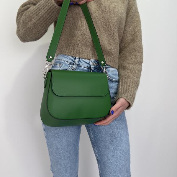 Добавь к своему стилю немного характера на каждый день, очень стильная модель оригинальной формы. Сумочка из натуральной кожи, внутри под клапаном сумочка закрывается на молнию, одно основное отделения и дополнительный карман на молнии, также в комплекте два плечевых ремни. Будь стильной в этом сезоне.