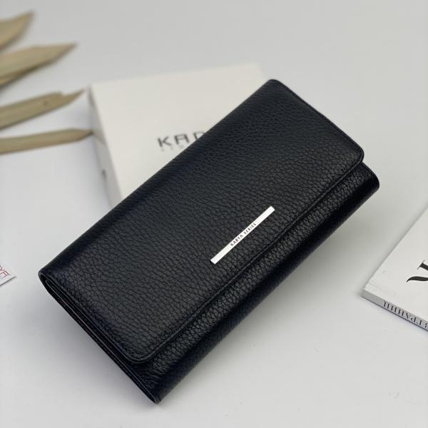 Чорний гаманець, виготовлений із справжньої шкіри найвищої якості. Всередині гаманця є чотири відсіки, три частини з блискавкою, що дуже зручно. Всередині також є картки для карт. Гаманець закритий кнопкою. Якщо вам потрібен дуже просторий гаманець, то ви його знайшли.