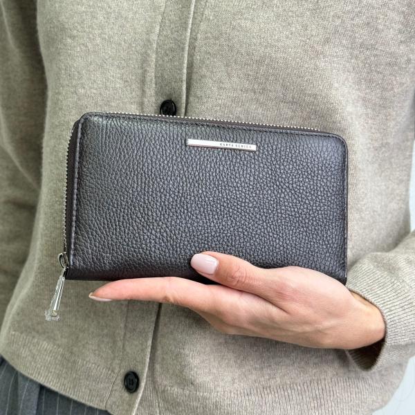 Жіночий гаманець у насиченому шоколадному кольорі виготовлений із натуральної шкіри та вдало поєднує стильний дизайн і практичність. Модель має три основні відділення без застібки та окрему секцію на блискавці для зручного зберігання дрібниць. Усередині передбачені слоти для карток, що дозволяють легко впорядкувати фінанси та необхідні дрібниці. Основне закривання гаманця виконане на блискавку, що гарантує комфорт і надійність у використанні. Зовні розташована додаткова кишеня на замку, яка робить аксесуар ще функціональнішим. Такий гаманець стане елегантним і водночас практичним вибором для сучасної жінки, яка цінує якість і комфорт. Придбати його можна у нашому магазині — ми пропонуємо стильні аксесуари з натуральної шкіри, що поєднують сучасний дизайн та зручність.
