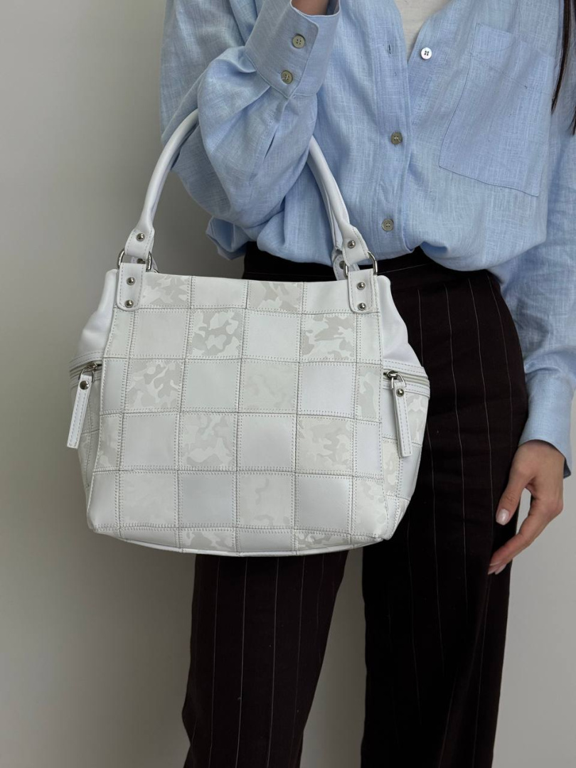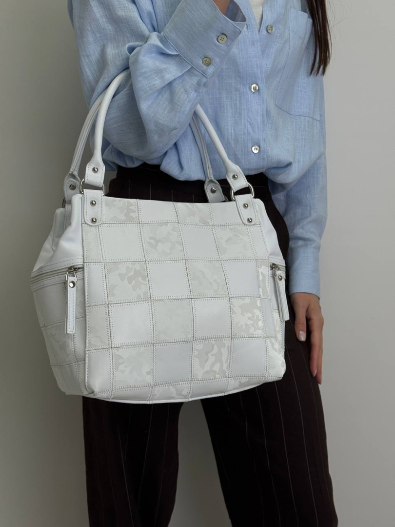 Твоя нова біла улюблениця - стильна сумка з натуральної шкіри. Зручна, містка та продумана до дрібниць: три окремі відділення на блискавці та зовнішні кишені для всього необхідного. Лаконічний дизайн, який доповнить будь-який образ.