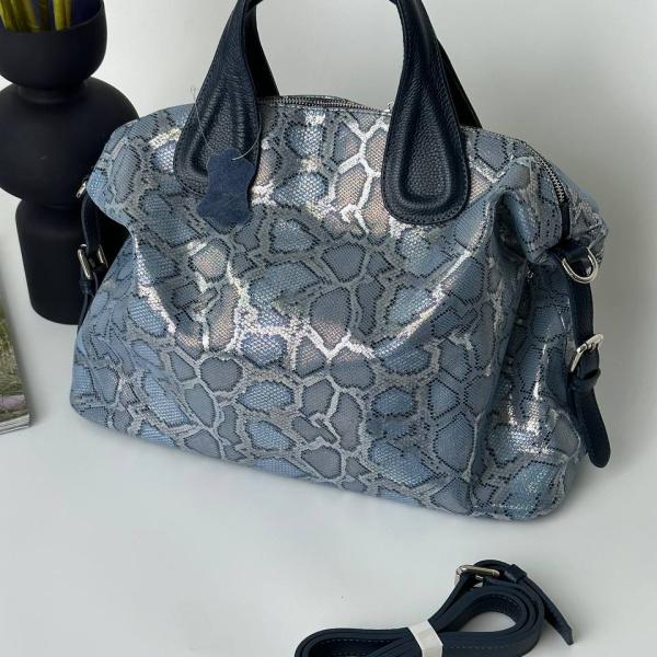 Стильна новинка, блакитна сумочка. Дуже зручний варіант сумки з приємної шкіри класу люкс, сумочка має два повноцінні відділення, також кишеню на блискавці та два без блискавки. У комплекті плечовий ремінь, що регулюється.