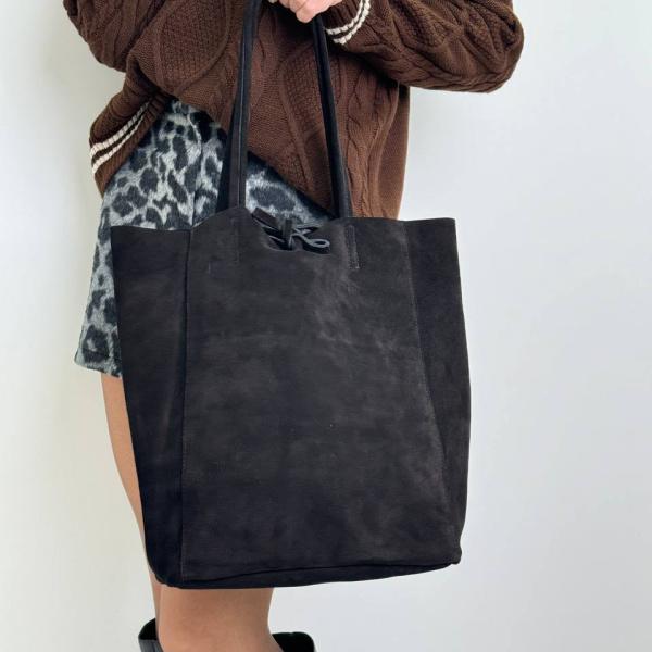 М'який шопер із натуральної італійської шкіри на зав'язках. Сумка має зручні ручки, тому Ви можете носити її у руці, а якщо потрібні вільні руки – її можна носити також і на плечі. Усередині сумки одне основне відділення, також є додаткова кишеня на блискавці.
