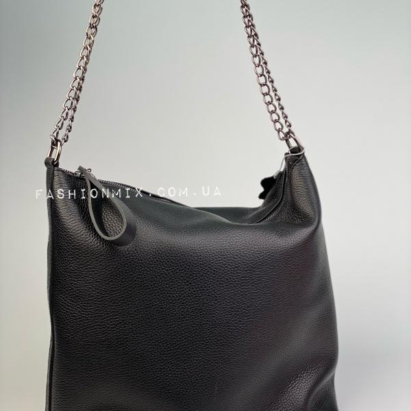 Стильна чорна сумочка із якісної натуральної шкіри. Всередині: два відділення, кишеня на блискавці яка розділяє сумку та кишеня для мобільного телефону і бокова кишеня. Ручка яка дозволяє носити сумку в руках та на плечі, також у комплекті плечовий довгий ремінь, який регулюється.