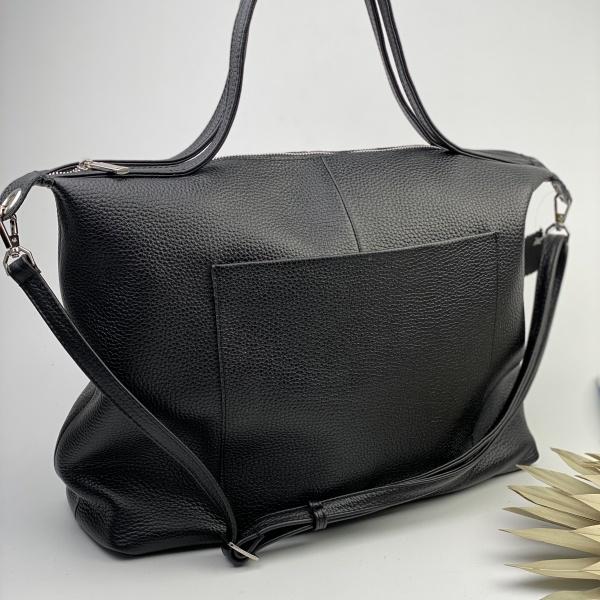 Жіночка чорна сумка яка підійде і в офіс і для прогулянки. Всередині одне основне відділення, також є кишеня на блискавці та без, довгий ремінь в комплекті. Сумка виготовлена з якісної натуральної шкіри.