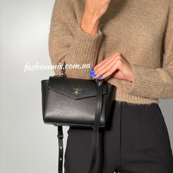 Міні чорна сумочка з якісної натуральної шкіри підійде під будь-яку ваш образ. Сумка має одне основне відділення, яке закривається під клапаном на блискавку, також є додаткова кишеня на блискавці і без і зі зворотного боку сумочки є кишеня, міні але дуже містка. В комплекті шкіряний ремінь який регулюється.