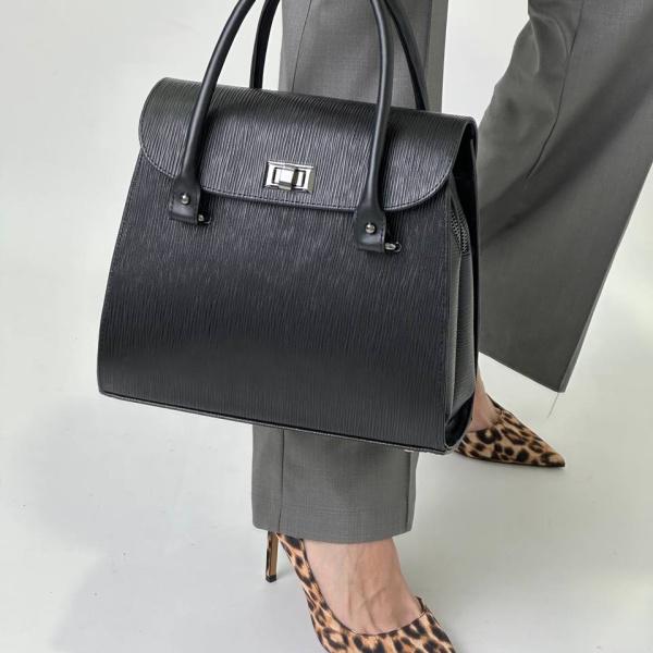 Чорна сумка з натуральної шкіри, відмінне рішення варіант для прогулянки та на кожен день. Під клапаном сумки два відділення яке закривається на блискавку та додаткові кишені на блискавці та без. Шикарна модель з натуральної шкіри не залишить вас байдужою.