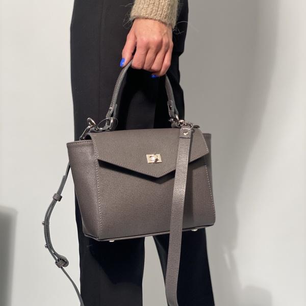 Новинка сезону з якісної натуральної шкіри дуже зручна та красива в кольорі графіт. Сумка має одне основне відділення, також є додаткова кишеня на блискавці і без, на перший погляд може здатися маленькою, але сумочка дуже містка. В комплекті шкіряний плечовий ремінь який регулюється.
