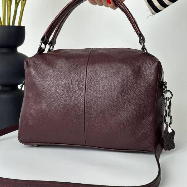 Ідеальна модель сумки з м'якої натуральної шкіри на роботу або на кожен день в кольорі марсала. Усередині одне відділення також є додаткова кишеня на блискавці і без. Довга ручка у комплекті. Сумочка вміщує всі необхідні речі на кожен день, дуже зручна та практична модель.