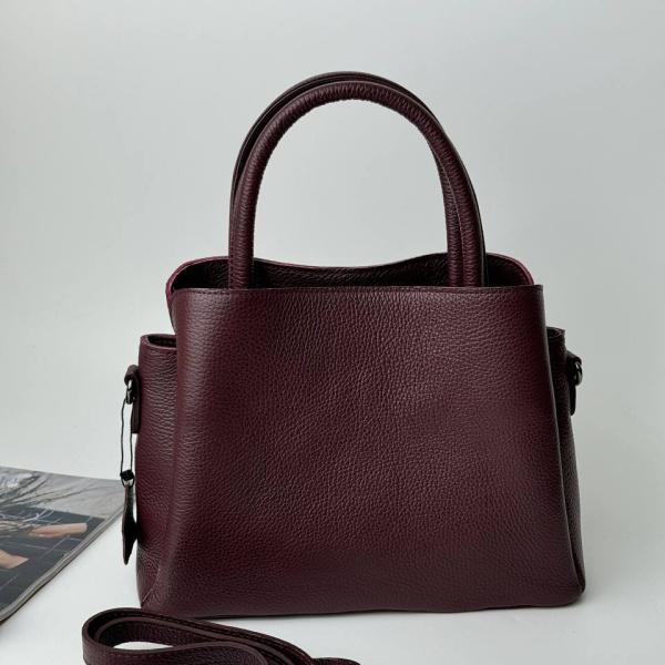 Елегантна жіноча сумочка з натуральної зернистої шкіри у приємному кольорі марсалу. Модель має три основні відділення, усередині є кишені. Закривається модель на блискавку та магнітні кнопки. Довжина ременя дозволяє носити сумку як у руках так і на плечі. Стильна та дуже практична модель. Доповнить ваш образ на будь-який захід.