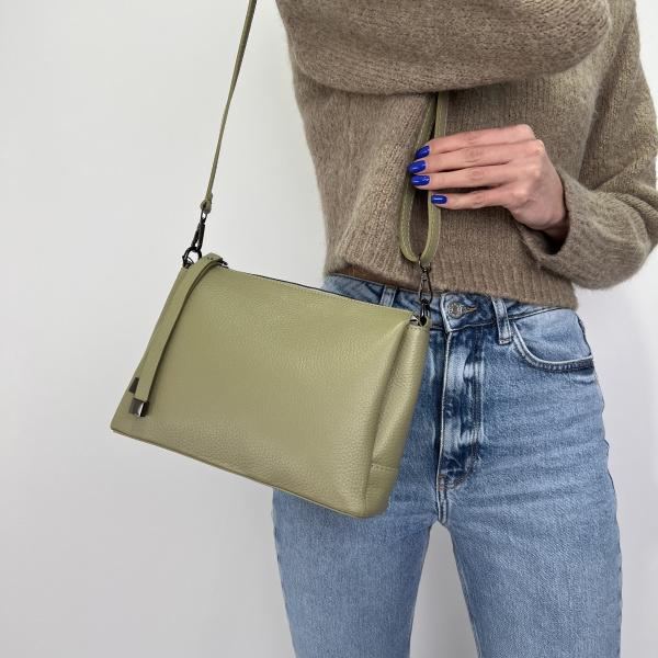 Стильна та зручна сумочка з натуральної шкіри флотар , незважаючи на розміри, ця красуня вміщує все необхідне для нас дівчат на кожен день. Всередині сумки три відділення, також є додаткова кишеня на блискавці зі зворотного боку, ремінь регулюється під потрібну вам довжину.
