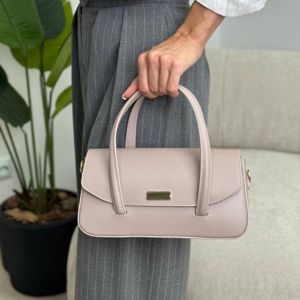Жіноча сумочка із натуральної гладкої шкіри пудрового кольору. Виконана повністю з гладкої приємної на дотик шкіри. Ця маленька чорна сумочка вражає своєю місткістю. Під клапаном одне основне відділення, яке додатково закривається на замок. Усередині є кишеня на блискавці. Є дві закруглені ручки, а також додатково є ремінь, який регулюється. Відмінний вибір для тих, хто цінує функціональність та стиль у компактних аксесуарах.