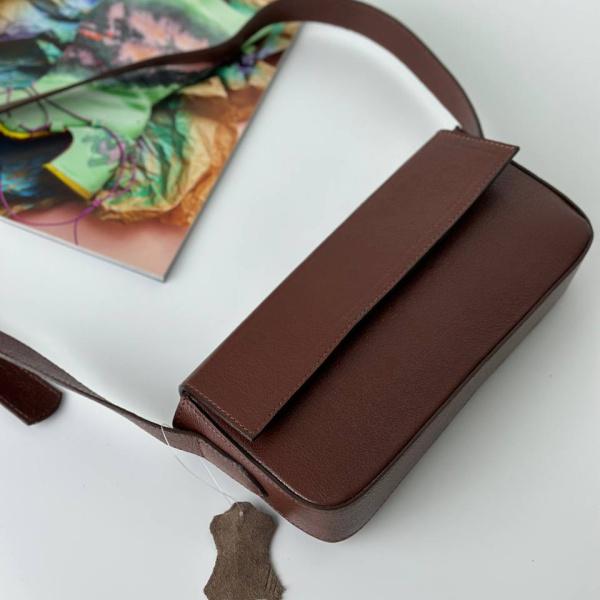 Дуже приваблива жіноча сумка кольору шоколад, порадує своїх власниць не тільки якісним матеріалом, а ще стане тією родзинкою, яка завершить Ваш бездоганний образ. Під клапаном одне основне відділення також є маленька кишеня на блискавці. І широкий ремінь, що регулюється під потрібну Вам довжину.