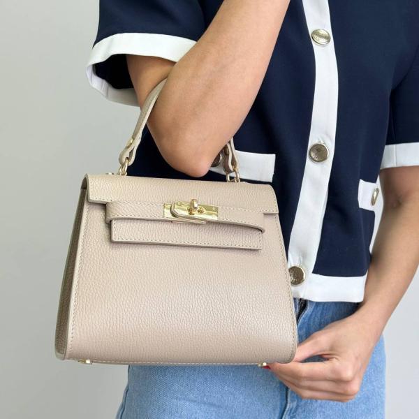 Компактна жіноча сумочка з натуральної зернистої шкіри в універсальному бежевому кольорі — витончений аксесуар, що поєднує класику з сучасністю. Модель має одне основне відділення, яке закривається на блискавку, а всередині — зручна кишеня для телефону або дрібниць. У комплекті — акуратна ручка для носіння в руці та подовжений регульований ремінь для комфорту на кожен день. Золотиста фурнітура додає елегантного блиску. Ідеальний вибір як для щоденного використання, так і для особливих подій. Придбати цю стильну модель можна в нашому магазині.