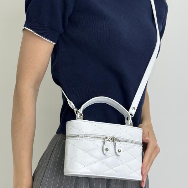 Жіноча сумочка з гладкої натуральної шкіри у класичному білому кольорі — стильний аксесуар, що підкреслить вашу елегантність. Модель вирізняється оригінальним стьобаним дизайном, який надає виробу виразного характеру. Сумочка має одне основне відділення, що надійно закривається на блискавку, забезпечуючи зручний доступ до вмісту. Подовжений регульований ремінь дозволяє носити її через плече або на плечі, забезпечуючи комфорт у щоденному використанні. Доступна у нашому магазині.