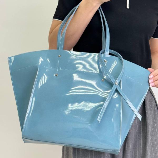 Жіноча сумочка великого розміру з натуральної гладкої шкіри у виразному блакитному кольорі — ефектний акцент для сучасного ритму життя. Модель має одне просторе відділення, яке надійно закривається на блискавку, а всередині розташована додаткова кишеня на замку для зберігання важливих речей. Завдяки продуманій місткості та елегантному дизайну, сумка ідеально підійде як для роботи, так і для подорожей. З нею ви точно не залишитеся поза увагою. Замовити цю модель можна просто зараз у нашому магазині — зробіть ставку на комфорт і стиль.
