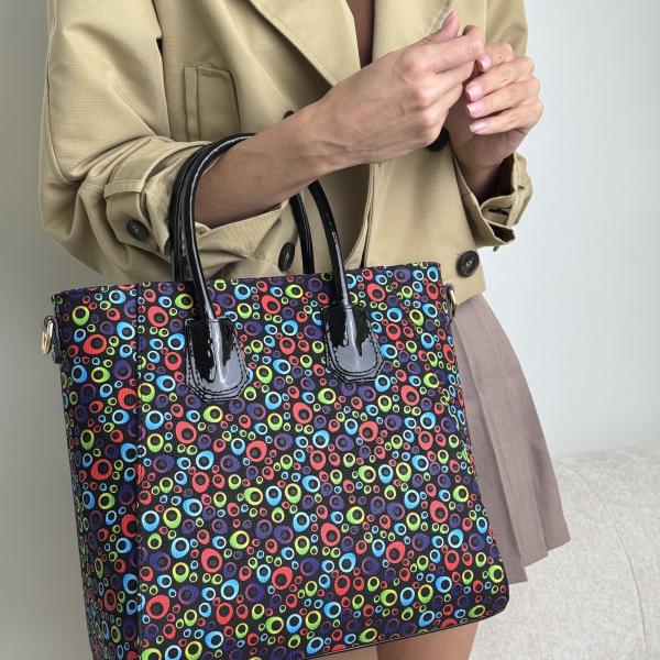 Стильна жіноча сумочка вирізняється м’якою фактурою та продуманим дизайном. Усередині розташовані два основних відділення, які поділені практичним карманом на замку. Додатково передбачені внутрішні кишеньки — як відкриті, так і на застібці. Сумочка надійно закривається зверху. Лакові ручки зручні у щоденному використанні, а регульований ремінь дозволяє носити аксесуар різними способами. Завдяки каркасному дну сумка зберігає форму та виглядає елегантно. У нашому інтернет-магазині ви знайдете стильні шкіряні вироби, створені для комфорту та довговічності.
