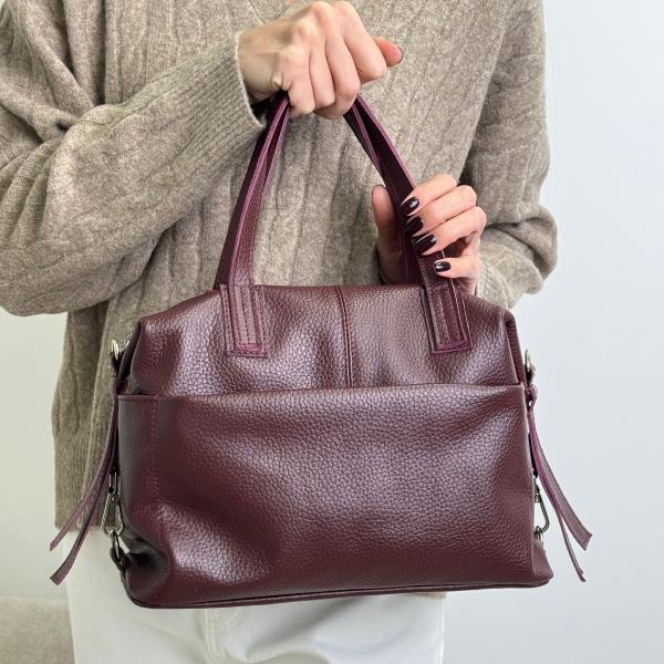 Сумочка в кольорі марсала, виконана з натуральної зернистої шкіри, поєднує елегантність і функціональність. Модель має два основні відділення, розділені кишенею на блискавці, а також дві додаткові внутрішні кишені — відкриту та на замку — для зручного зберігання необхідних речей. Зовні, попереду та позаду, розташовані кишені на блискавці, що додає практичності у щоденному користуванні. Завдяки коротким ручкам і подовженому регульованому ременю, який легко адаптується до вашого ритму життя, сумочку зручно носити як у руці, так і на плечі. Придбати цю стильну модель із натуральної шкіри можна у нашому магазині — гармонійне поєднання вишуканості, комфорту та якості.