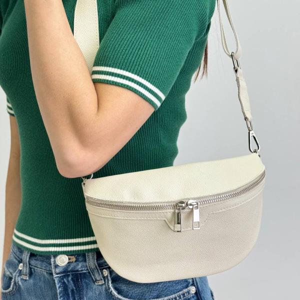 Сумочка в молочному кольорі — втілення ніжності та елегантної простоти. Має одне основне відділення та додаткову кишеню на блискавці всередині, що дозволяє зручно розмістити все необхідне. Подовжений ремінь регулюється, тож сумочку можна легко носити через плече або на плечі. Лаконічна форма, універсальний відтінок і м’яка натуральна шкіра роблять цю модель ідеальним доповненням до будь-якого образу. Замовити можна в нашому магазині — обирайте стиль, який говорить за вас.